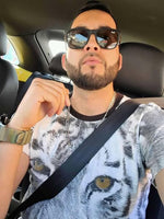Estética futurista con acabados metálicos y líneas limpias.